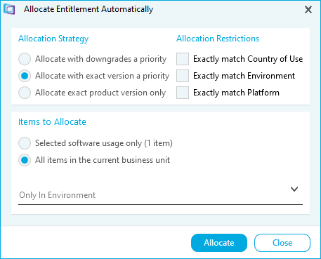 The Allocate Automatically task allows you to automatically allocate licenses to software usage.