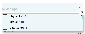 - Tick a filtering box or select options from the drop down lists. The asset count is updated.