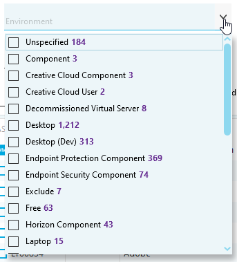 - The Has Liability tick box shows only software usage items that incur a licensing liability