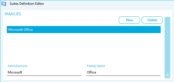 - The Families section is used to create or delete a product family.