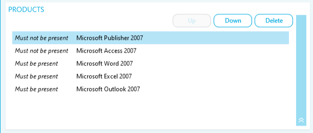 - Add Must Not Be Product indicates a product that must not be installed for the Suite to apply.