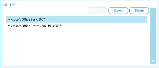 - Click Up or Down to re-order the suite in the list
