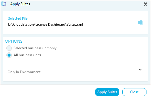 - Suites can be applied to devices in all Business Units or just the currently selected Business Unit.
